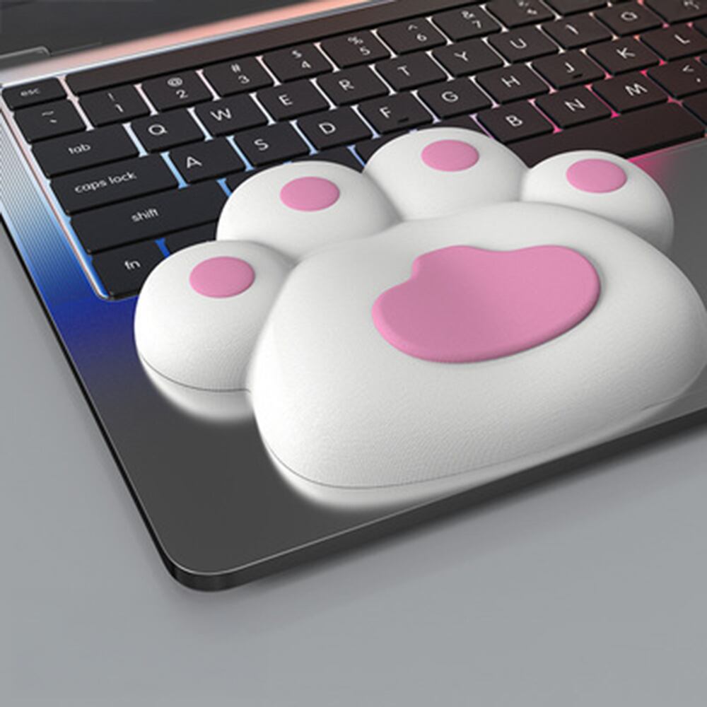 やわらかでプニプニした触感がかわいい猫の足裏タイプのリストレストと猫の手リストレストのセットで、手首の疲れ軽減と癒しを与えてくれます。