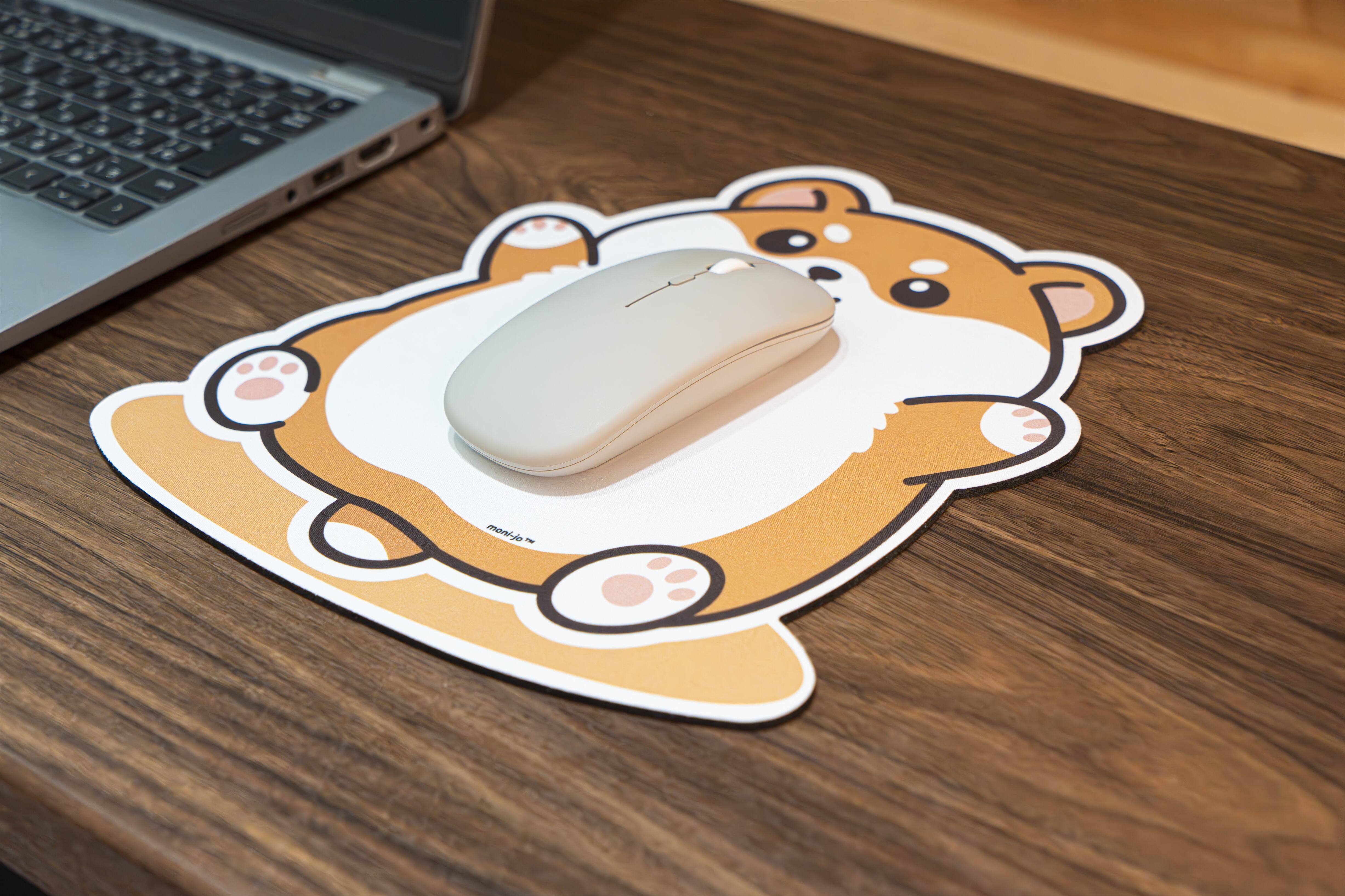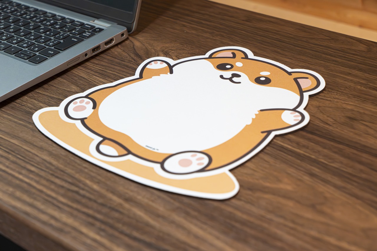 切り抜きデザインのかわいいゴールデンハムスターがデスク上をかわいく華やかにしてくれ、癒しを与えてくれるマウスパッドです。